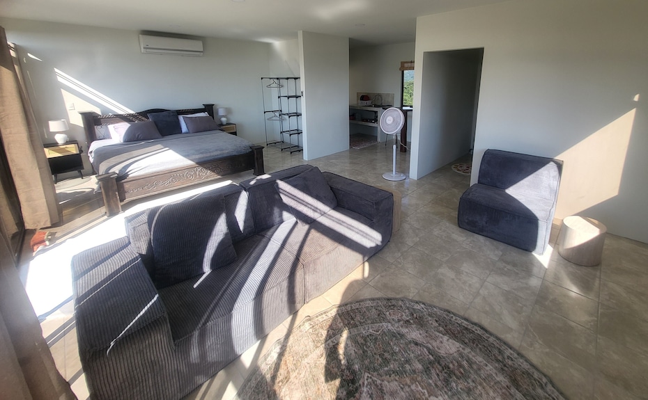 This large, open-concept one-bedroom studio features a full bathroom, full kitchen, and a bright, comfortable living area filled with natural light. Its elevated position captures stunning sunsets and refreshing ocean breezes, creating the ultimate coastal living experience.