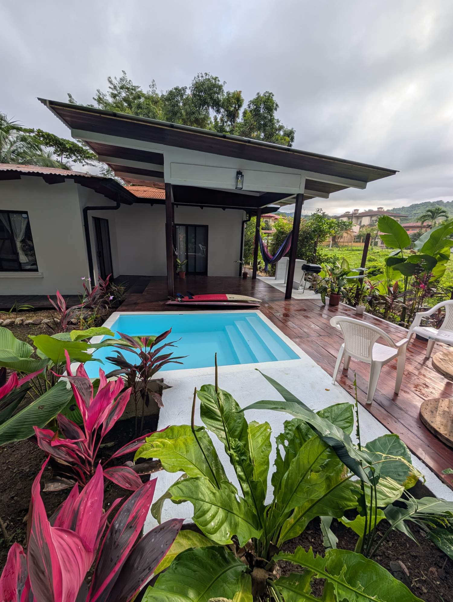 This charming home offers a beautiful landscaped garden, small private pool, mature trees, and a peaceful tropical atmosphere, perfect for relaxed coastal living.